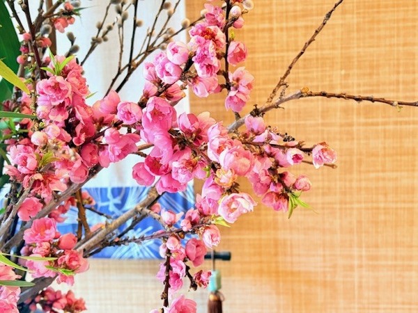 こんにちは。😄今日で2月も終わりですね。少しずつですが、春の気配を感じられるようになりました。そして、ウグイスの鳴き声も聞こえております。 当館の玄関花も桃の花と、ミモザを合わせた春の花を生けております。冷たい空気の中にも、春の暖かさを感じていただけると嬉しいです。😉 帳場 藤平
